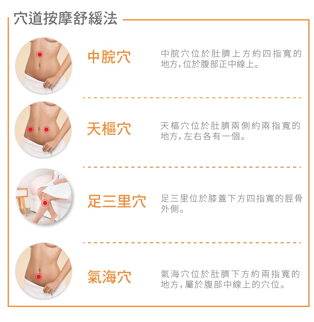 • 按摩方法:用大拇指或食指輕輕按壓中脘穴,進行順時針方向的揉按,每次按摩3-5分鐘。