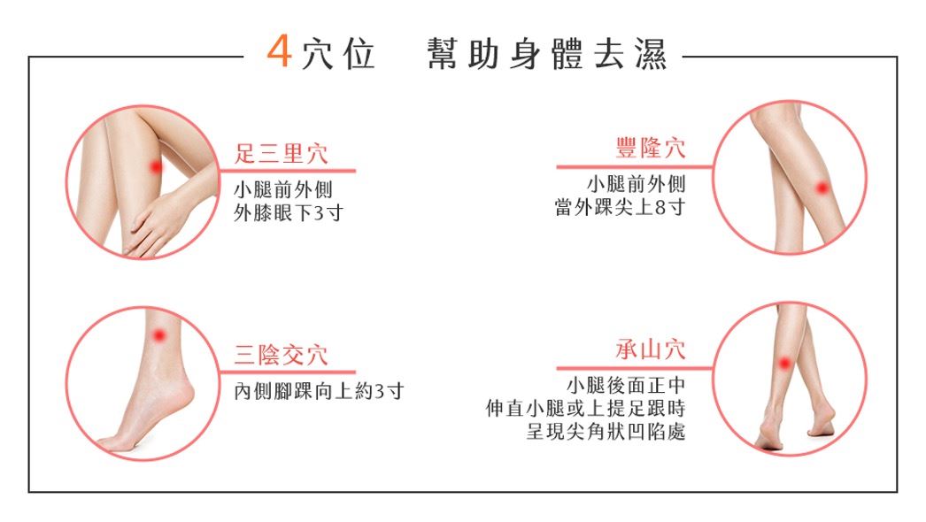 最後,如果你經常面臨體內濕氣太重的困擾,不妨將以下4個穴位記下來,每天花5分鐘按壓,幫身體找回應有的除濕力,讓水份不再滯留。
